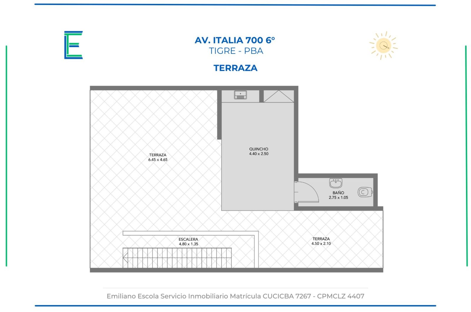 DEPARTAMENTO 2 AMB TIPO PENTHOUSE CON BALCON, GRAN TERRAZA Y PARRILLA PROPIA CON VISTA ABIERTA Y COCHERA CUBIERTA. Unidad super luminosa, estrenada en enero de 2025 con expensas accesibles ubicado en Av. Italia a metros del Centro de Tigre. *SE ACEPTA PERMUTA DEPARTAMENTO EN CABA.* Características: 2 Ambientes de 60 m2 cubiertos, 13 semicubiertos del balcón y 54 mts. de terraza propia. Living comedor con salida a balcón con vista abierta con split. Dormitorio con placard de piso a techo y split. Cocina integrada con conexión para lavarropas. Baño completo con ventana - ventilación natural. Ascensor y hall de ingreso estilo industrial. Terraza propia con ingreso interno por la unidad, único y exclusivo, con un toilette, quincho y parrilla completa. Se destaca por su amplitud y la posibilidad infinita de crear espacios al aire libre, junto a la mejor vista de la ciudad tanto de día como de noche. Cochera cubierta. Amenities Parrillero. Piscina en altura. Toda la información del aviso, incluyendo medidas, precio, impuestos, servicios, etc. son estimativos, sujetos a modificación y no vinculantes, según lo dispuesto en el art. 973, Cód. Civ. y Com.